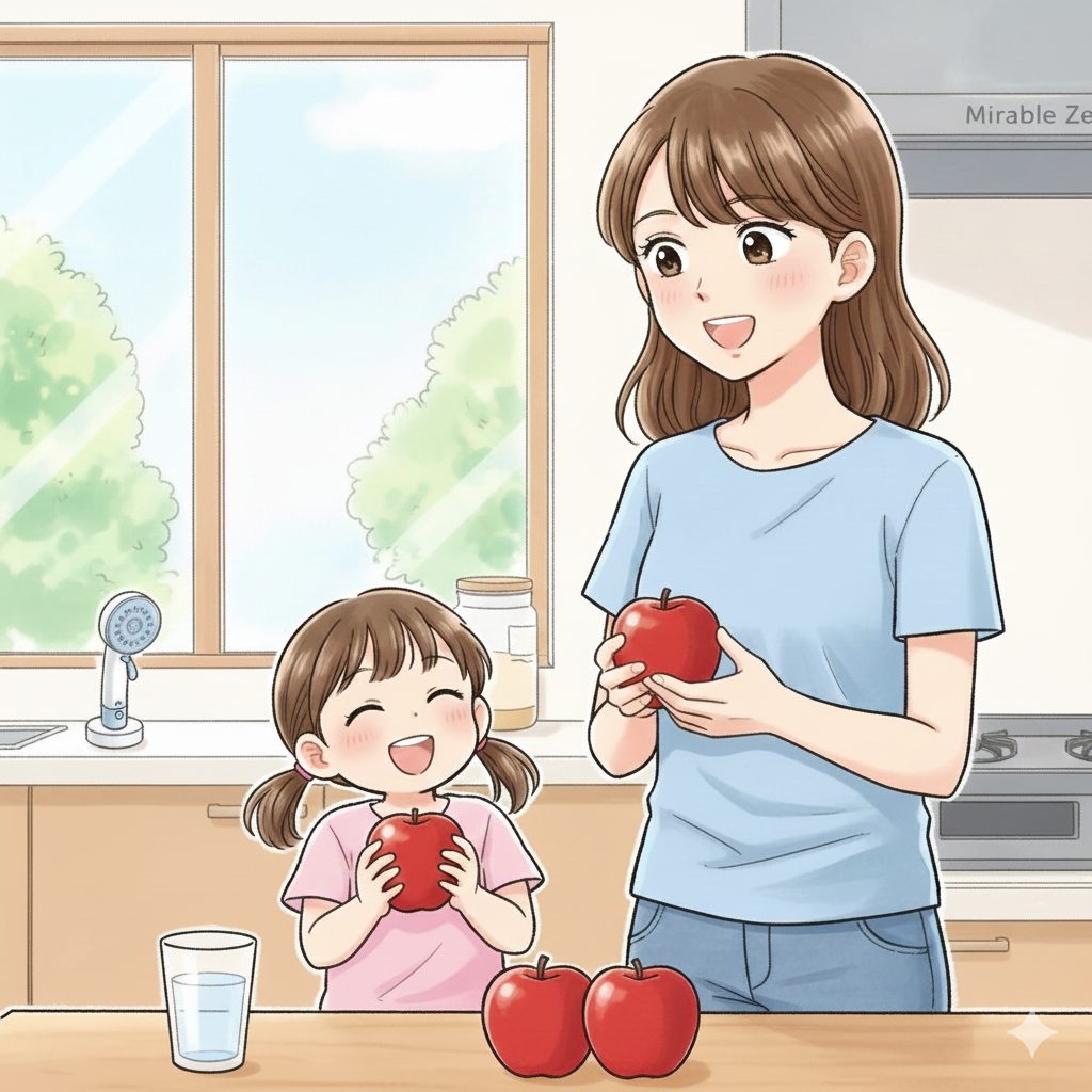 ミラブルゼロの重さ、350gはりんご1個分ぐらいの重さです。
